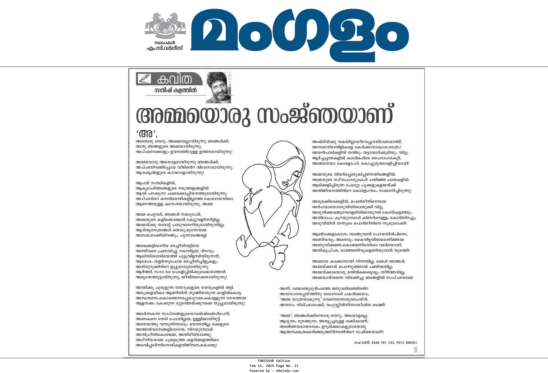 സതീഷ് കളത്തിൽ: തൃശൂർ ശങ്കരയ്യ റോഡ് സ്വദേശി. പ്രതിഭാവം എഡിറ്റർ, ഉത്തരീയം കലാ- സാംസ്കാരിക മാസികയുടെ അസോ. എഡിറ്റർ. ‘ദോഷൈകദൃക്ക്’ എന്ന പേരിൽ പ്രതിഭാവത്തിൽ ‘വോക്കൽ സർക്കസ്’ എഐ കാർട്ടൂൺ കോളവും ചെയ്യുന്നു.