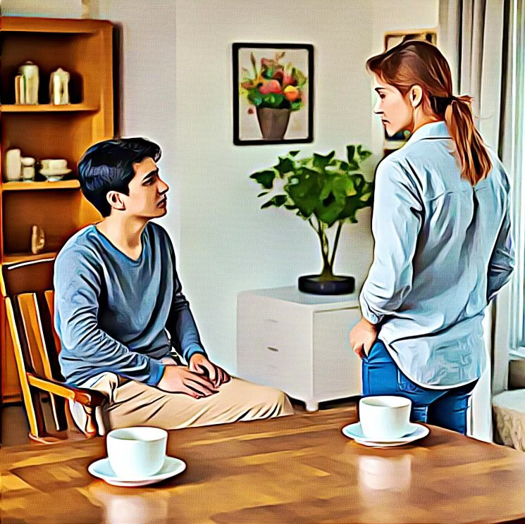 ഇരിക്കാനുള്ള അവന്റെ ക്ഷണം സ്വീകരിച്ചെങ്കിലും കസേരയിലിരിക്കാതെ മേശപ്പുറത്തേക്ക് അല്പം കയറി ഇരുന്നതേയുള്ളു.