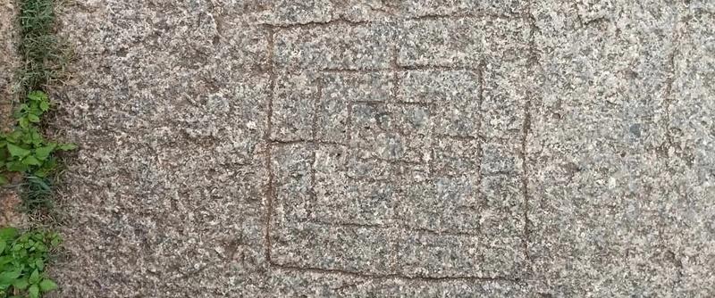 ക്ഷേത്ര പ്രവേശന കവാടത്തിൻ്റെ ഇരുവശത്തും ബോർഡ് ഗെയിം പോലെ കള്ളികൾ കൊത്തിവെച്ചിട്ടുണ്ട്. ലൂഡോ പോലുള്ള കളികൾ കളിക്കാവുന്ന ഒന്ന്. കിലുകിലുങ്ങനെയുള്ള ഒച്ചയുമായി ഒരു കുഞ്ഞുപെൺകാറ്റ് കയ്യിൽത്തൂങ്ങി. കളിക്കാൻ വരുമോ എന്നു ചിണുങ്ങി. അമ്മയുടെ കണ്ണു വെട്ടിച്ച് ഓടിവന്നവളായിരുന്നു അവൾ. ‘അച്ഛനും അമ്മാവനും സഹോദരനും ഒക്കെ കളിക്കുന്നുണ്ടല്ലോ, എന്നെയെന്താണ് കൂട്ടാത്തത്’ എന്നായിരുന്നു അവളുടെ സംശയം. ഞാനവൾക്ക് അവിടെ ആലേഖനം ചെയ്ത ചിത്രം കാണിച്ചു കൊടുത്തു. കളിയിൽ ഏർപ്പെട്ടിരുന്ന രണ്ടു പുരുഷന്മാരുടെ ചിത്രം!