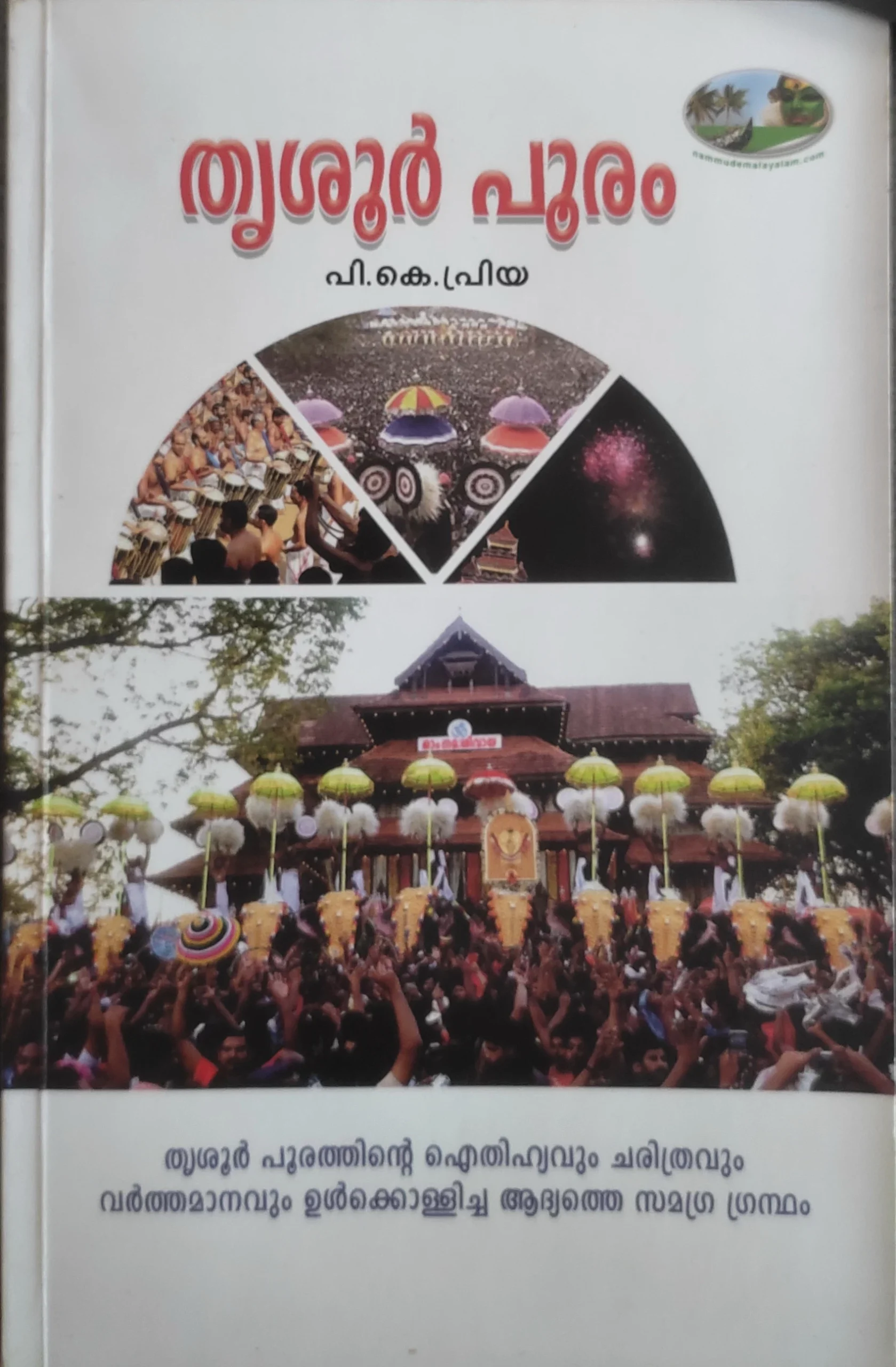 2013ൽ, പി. കെ. പ്രിയ എഴുതിയ ‘തൃശ്ശൂർ പൂരം’ എന്ന പുസ്തകത്തിന്റെ രണ്ടാം പതിപ്പിലെ സമർപ്പണ ഭാഗം തുടങ്ങുന്നത് ഇങ്ങനെയാണ്. തൃശ്ശൂർ പൂരത്തിന്റെ ഐതിഹ്യവും ചരിത്രവും വർത്തമാനവും ഉൾക്കൊള്ളിച്ച ഒരു സമഗ്ര ഗ്രന്ഥമാണ് ഇത്. ഒരുപക്ഷേ, ഇത്തരം ഒരു ഗ്രന്ഥം ഇതുവരെ ആരും എഴുതിയിരിക്കാൻ വഴിയില്ല.